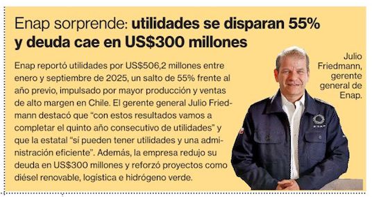 Enap aumenta en 55% sus utilidades al tercer trimestre, pero caen sus ingresos - (Diario Financiero)