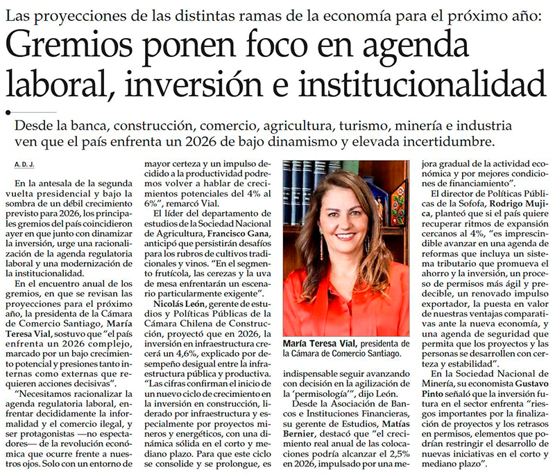 Gremios empresariales entregan balance del año y hacen sus apuestas para 2026: mayoría espera alzas más acotadas - (Pulso)