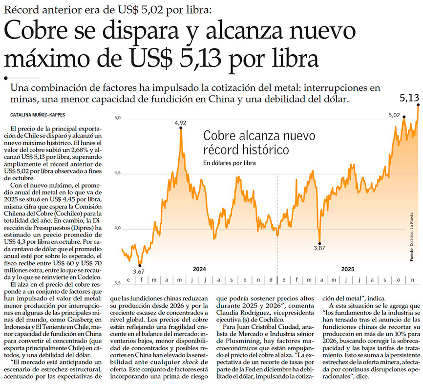 Cobre llega a su mayor nivel del año por menor oferta y temor de restricciones en China - (Diario Financiero)