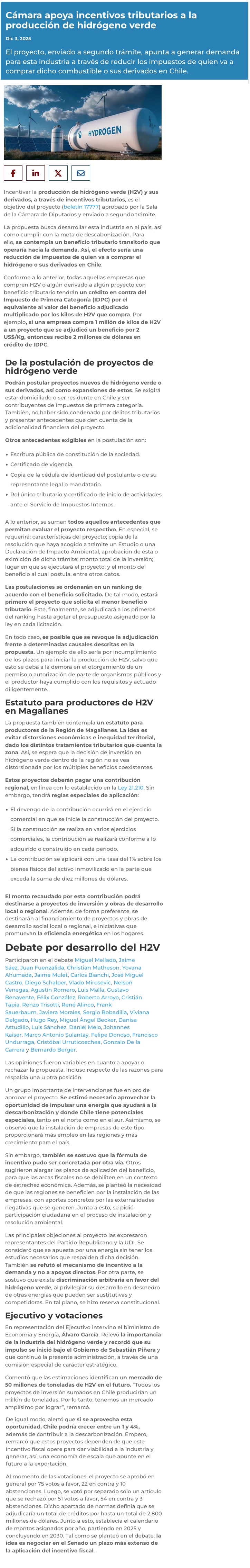 Cámara aprueba y despacha al Senado proyecto que establece incentivos tributarios a la producción de hidrógeno verde y sus derivados - (radiopolar.com)