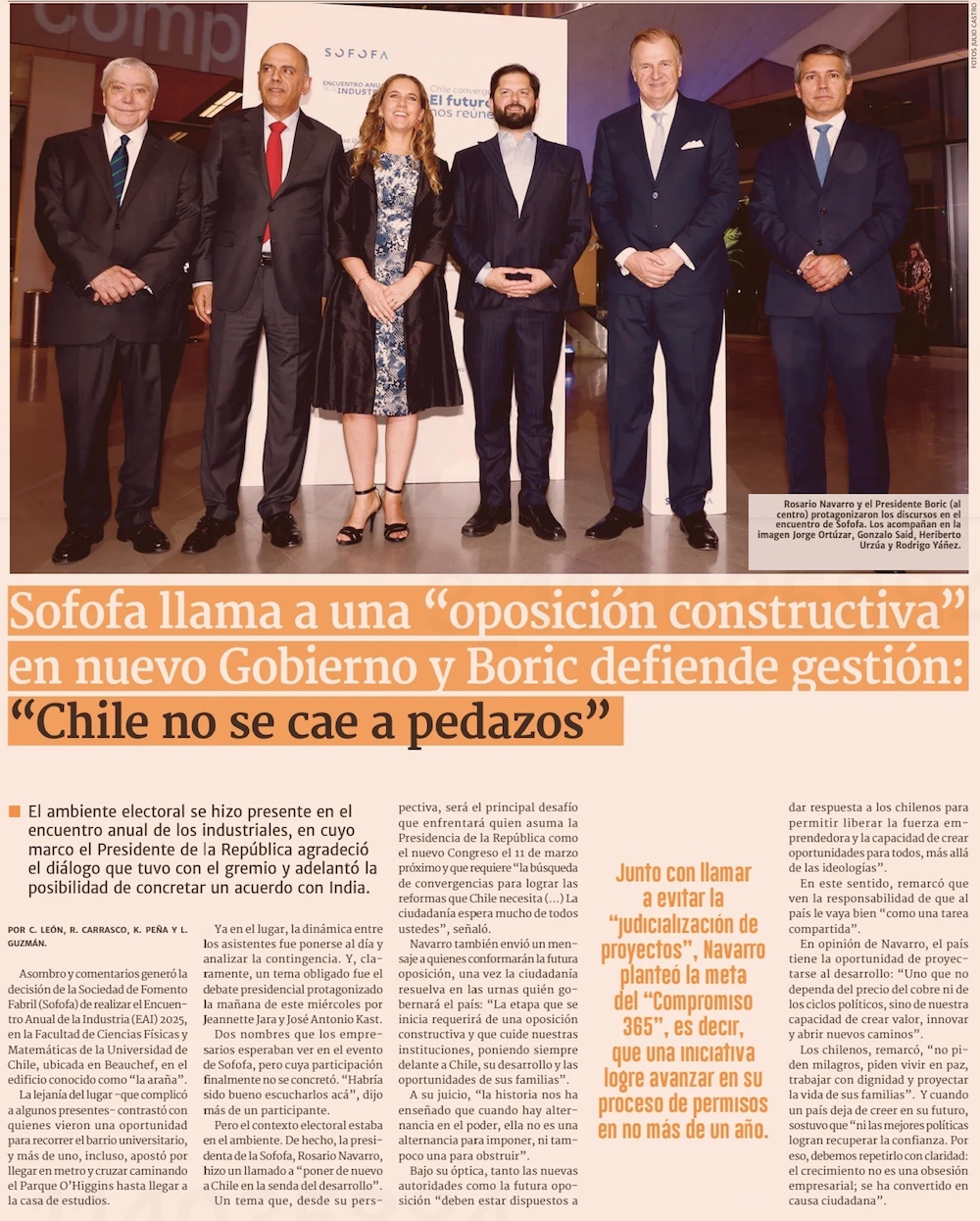 Sofofa: “El crecimiento no es una obsesión empresarial; se ha convertido en causa ciudadana” - (El Mercurio de Santiago)