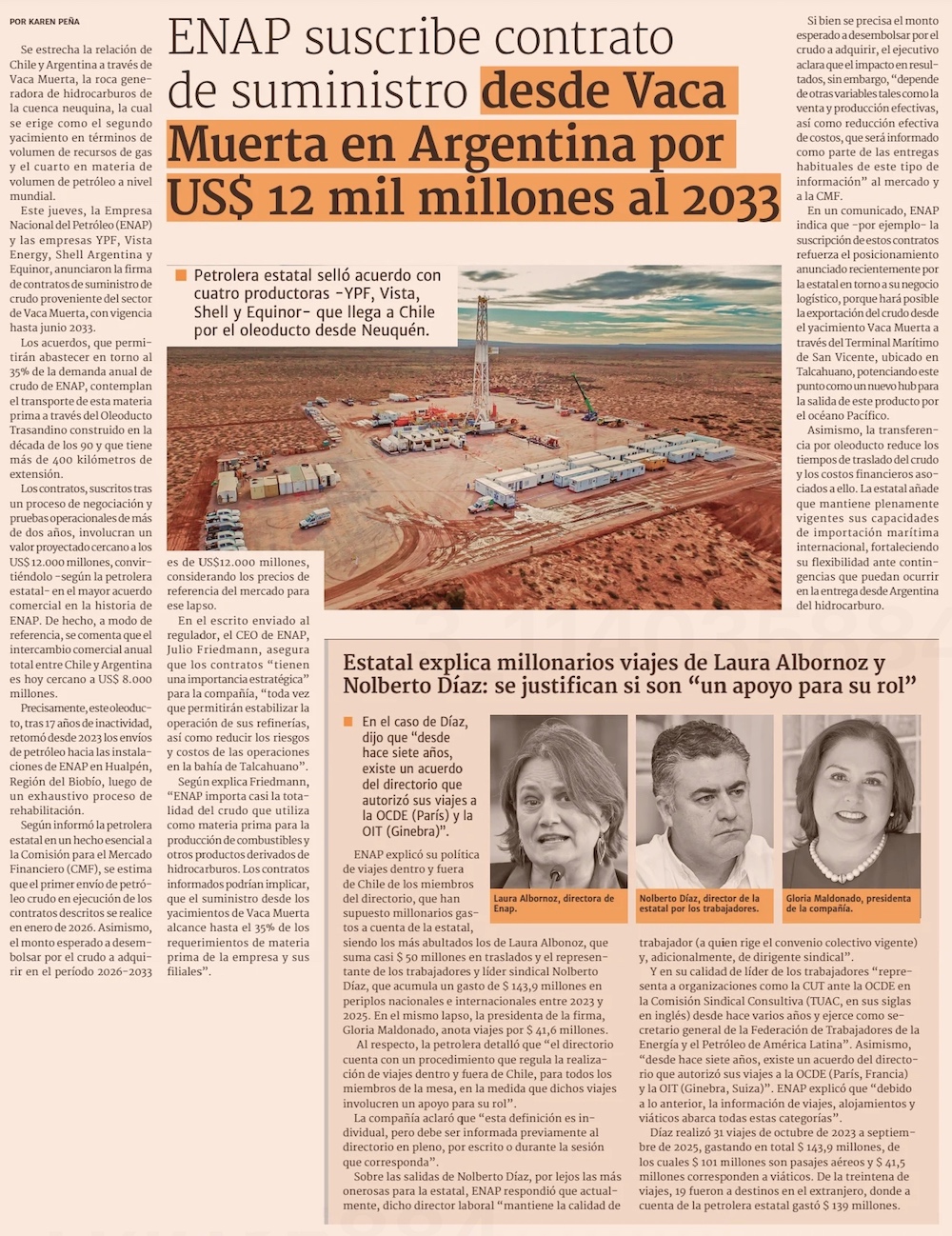Enap cierra el mayor contrato de su historia: el 35% del crudo anual de la estatal vendrá desde Argentina - (Pulso)