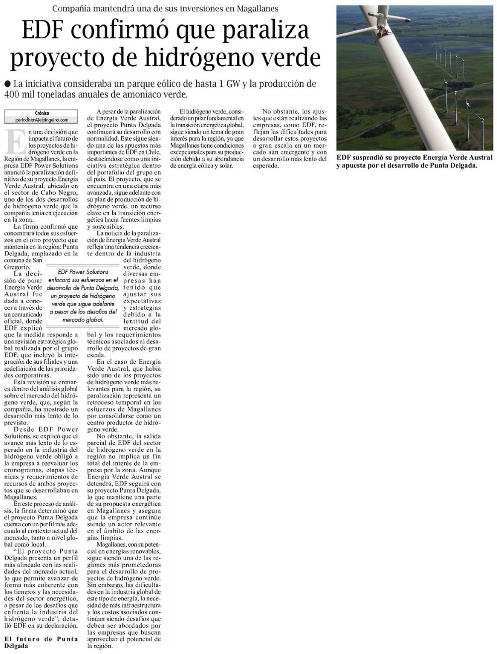 EDF Power Solutions confirma detención de proyecto en Cabo Negro y comunica su retiro del gremio regional - (La Prensa Austral)