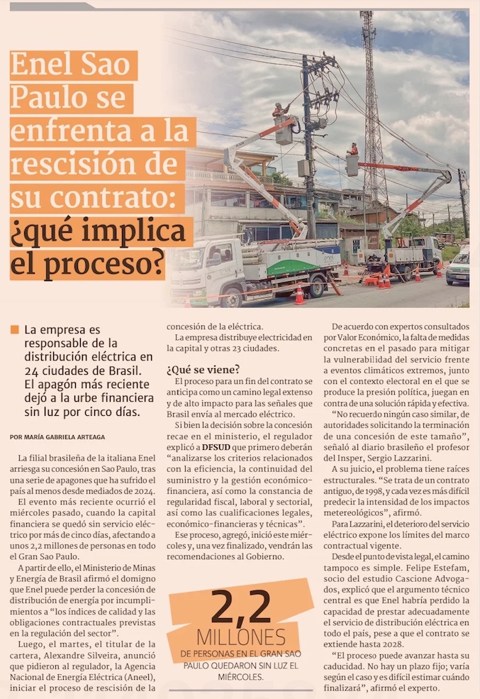 Iniciarán proceso de caducidad de Enel en S. Paulo - (El Mercurio de Santiago)