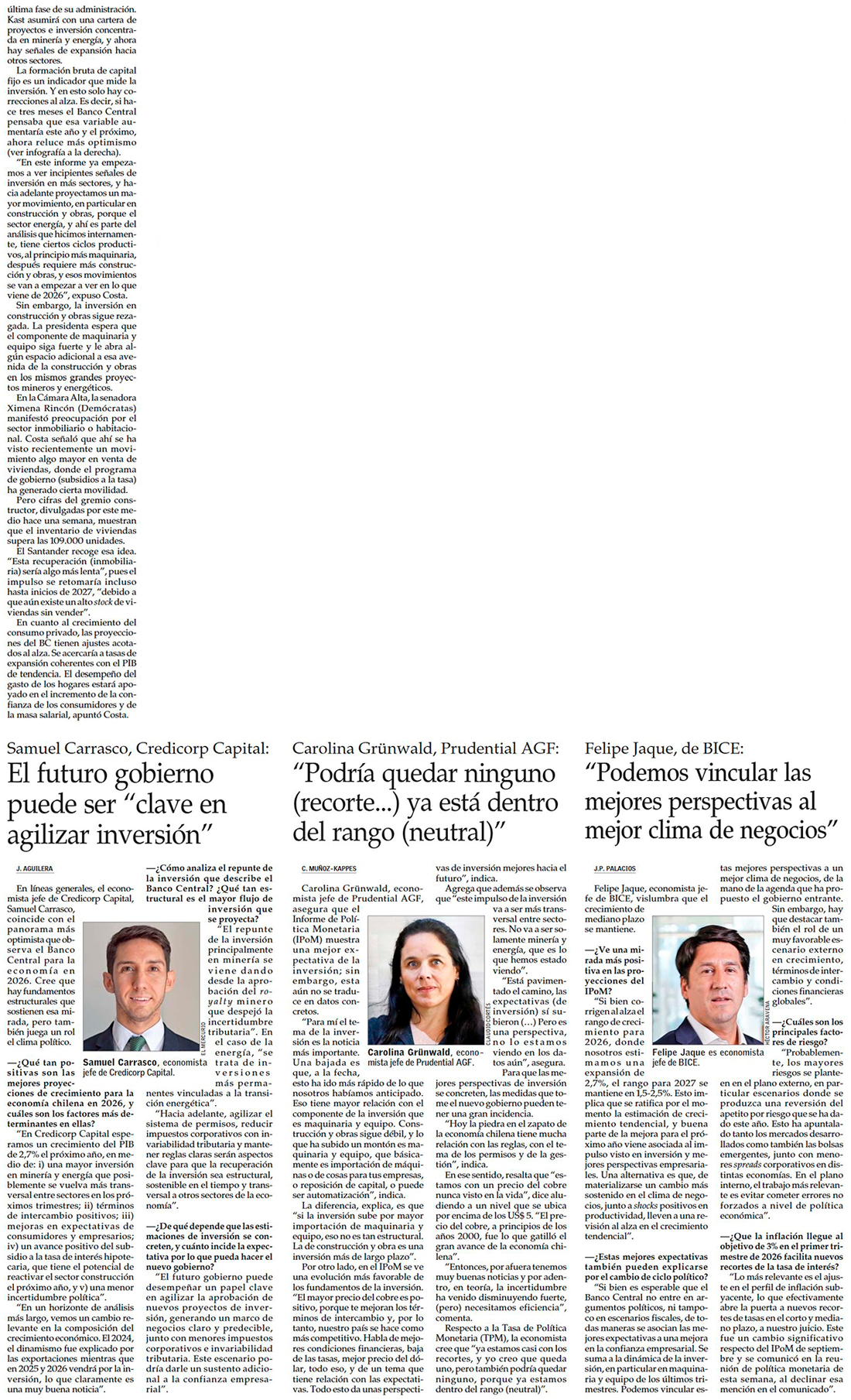 Viento a favor para el nuevo Gobierno: Banco Central mejora proyecciones para el PIB y la inversión en 2026 - (Diario Financiero)