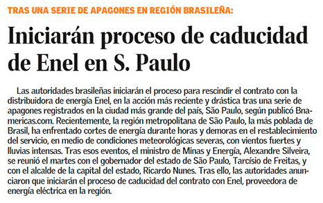 Enel Sao Paulo se enfrenta a la rescisión de su contrato: ¿qué implica el proceso? - (Diario Financiero)