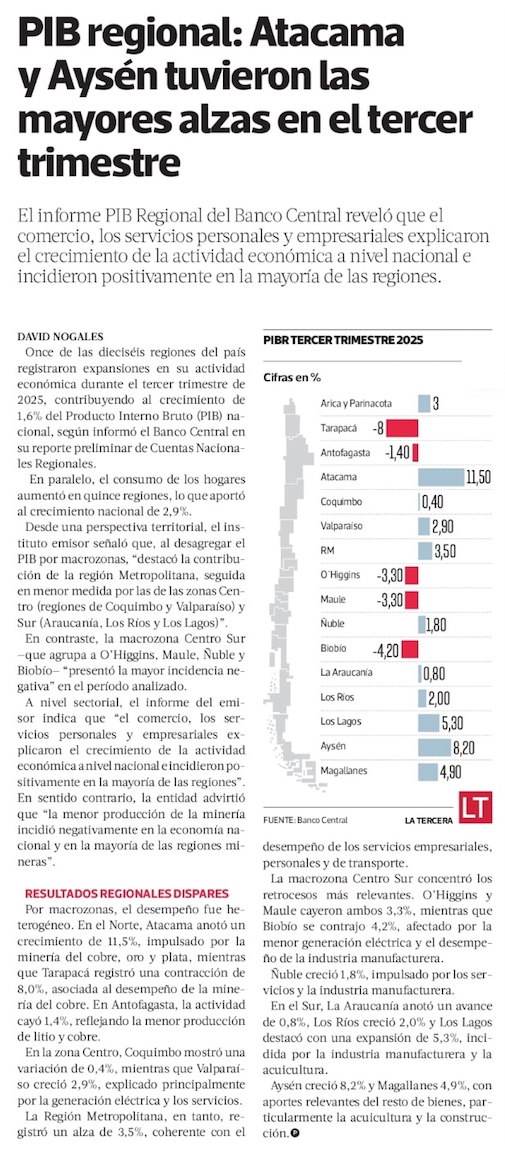Los contrastes del norte: Atacama lidera crecimiento del país y Tarapacá las caídas - (Diario Financiero)