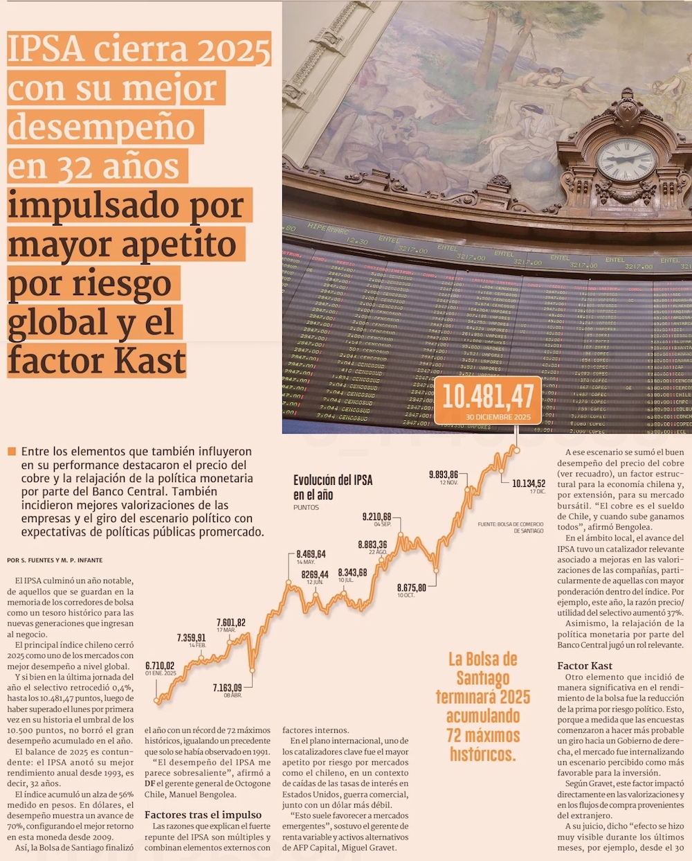 IPSA se disparó 56% en 2025 y alcanzó su mejor desempeño desde 1993 - (El Mercurio de Santiago)