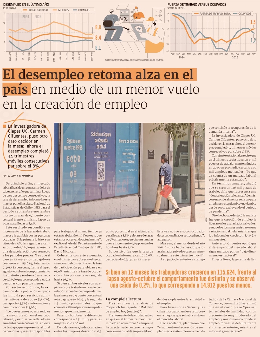 Desempleo vuelve a subir después de cuatro meses y expertos ven poco probable que baje de 8% en el mediano plazo - (Pulso)