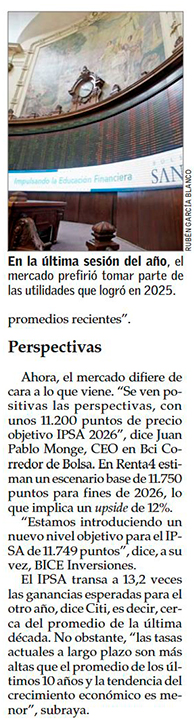 IPSA cierra 2025 con su mejor desempeño en 32 años impulsado por mayor apetito por riesgo global y el factor Kast - (Diario Financiero)