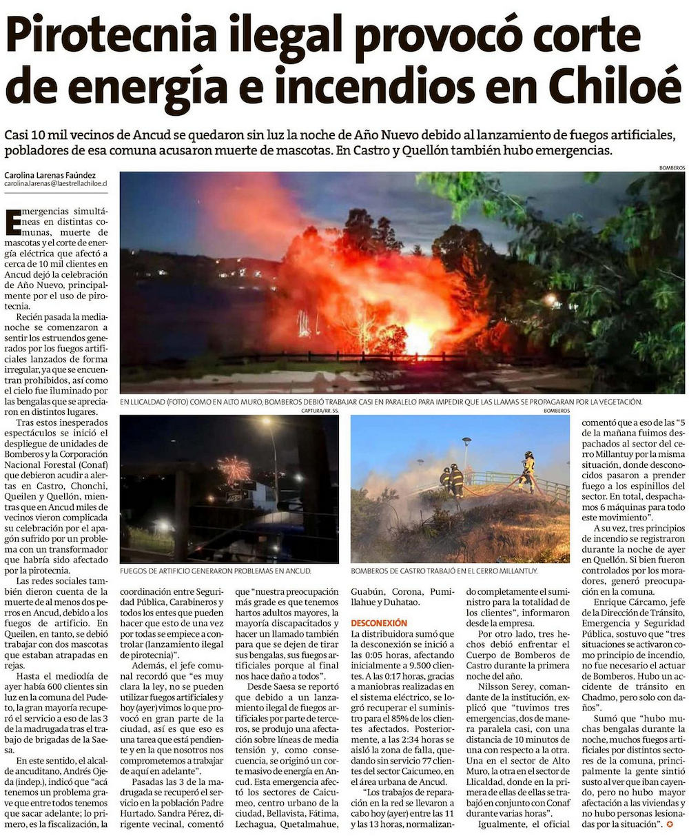 Pirotecnia empaña festejos de Año Nuevo en Punta Arenas: más de 7 mil hogares quedaron sin luz - (La Prensa Austral)