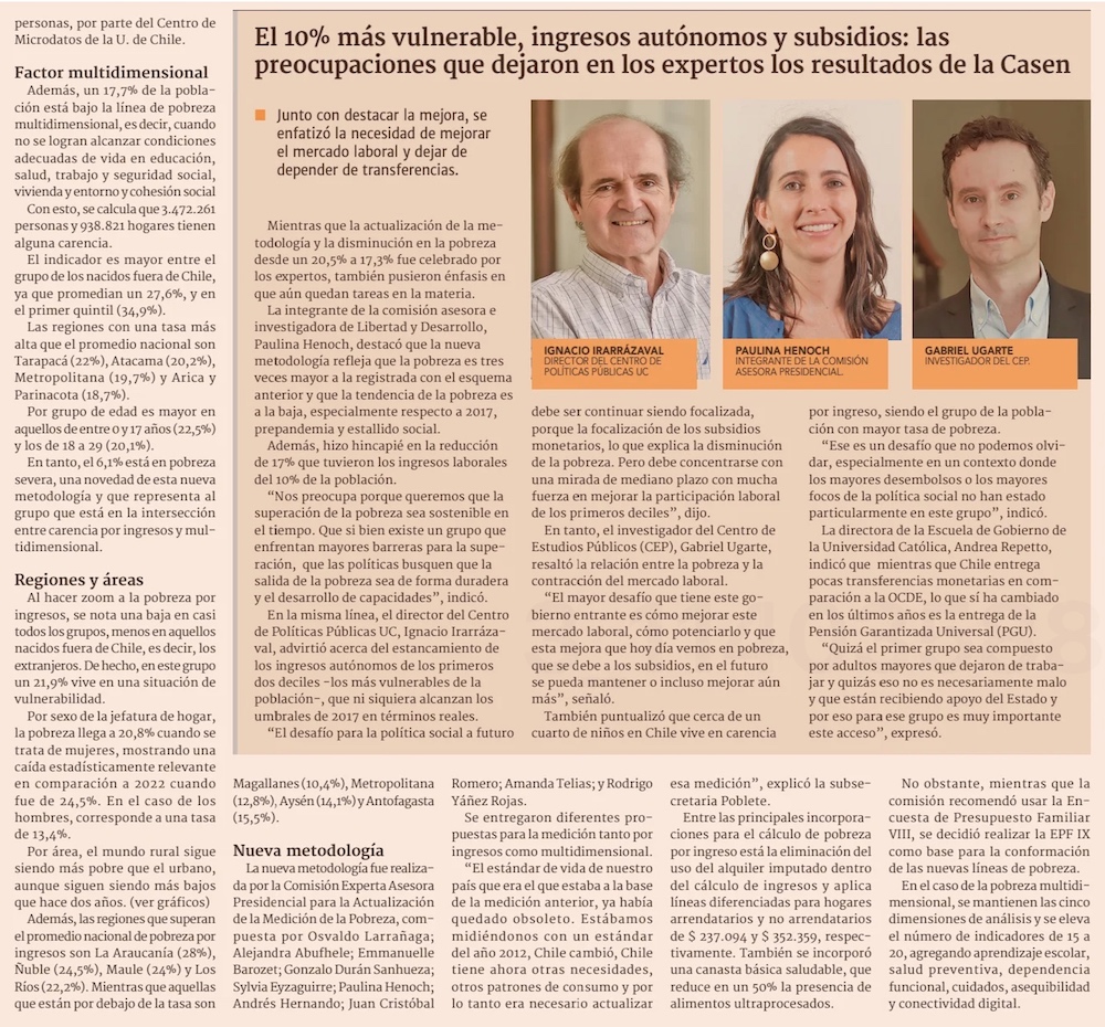 Nueva metodología calcula pobreza en 17% y subsidios ganan incidencia - (El Mercurio de Santiago)