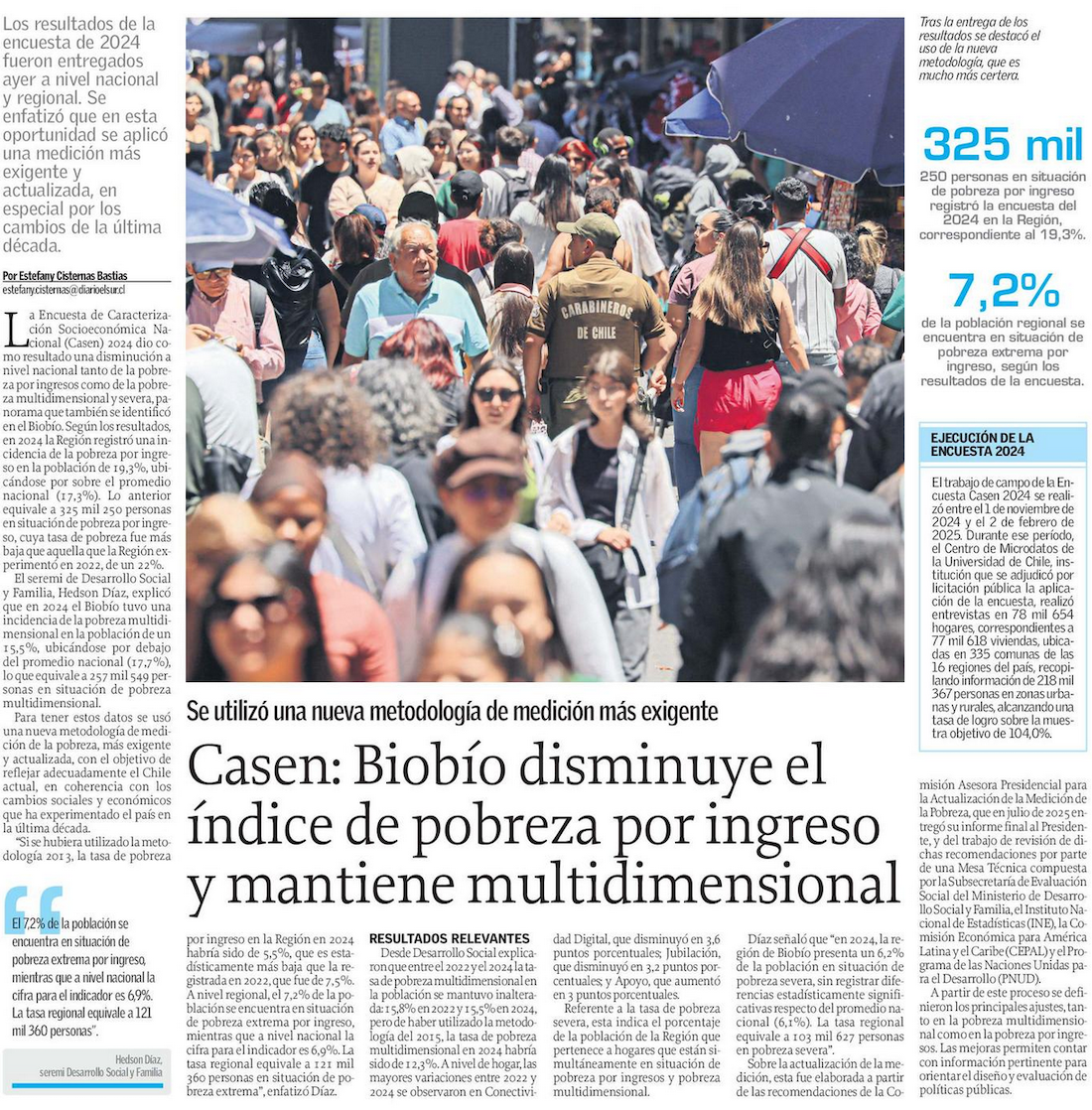 Nueva metodología calcula pobreza en 17% y subsidios ganan incidencia - (El Mercurio de Santiago)