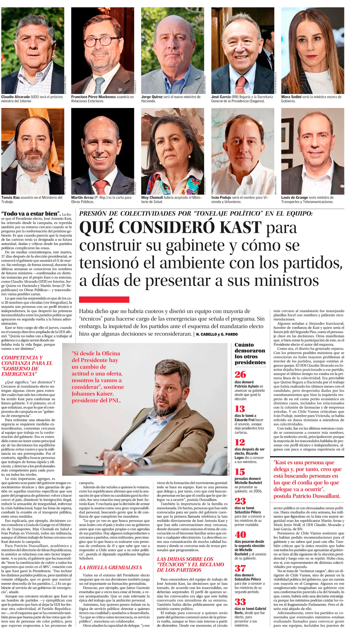 Kast rebaraja gabinete en medio de críticas por exceso de nombres con perfil técnico - (El Mercurio de Santiago)