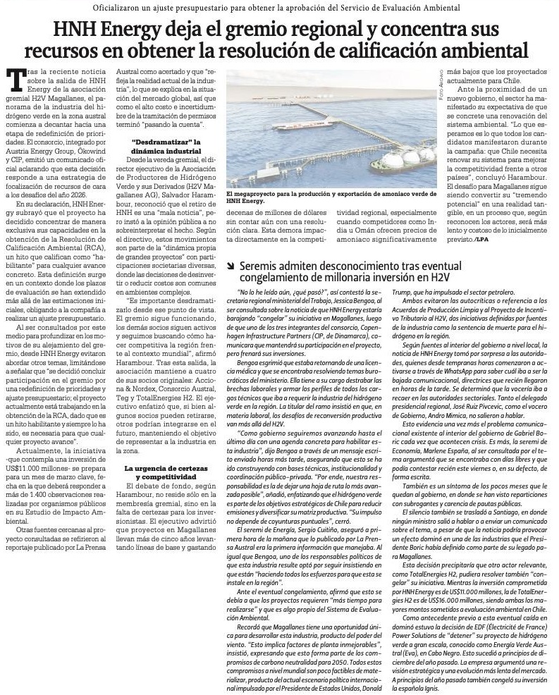 Proyecto HNH se retira del gremio H2V Magallanes por reducción de costos - (elmagallanico.com)
