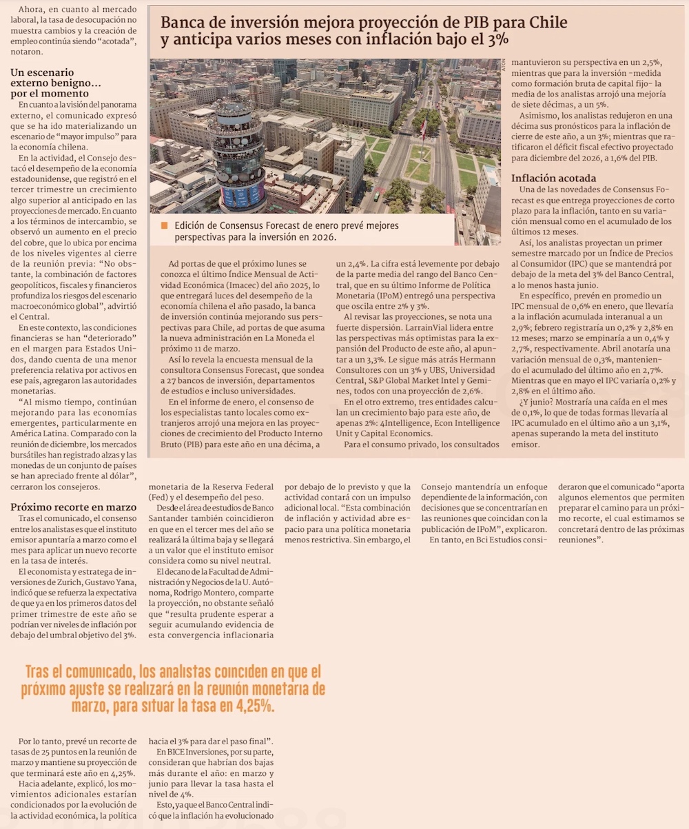 "Una inflación menor a la prevista": B. Central sentaría las bases para recortes de tasas - (El Mercurio de Santiago)