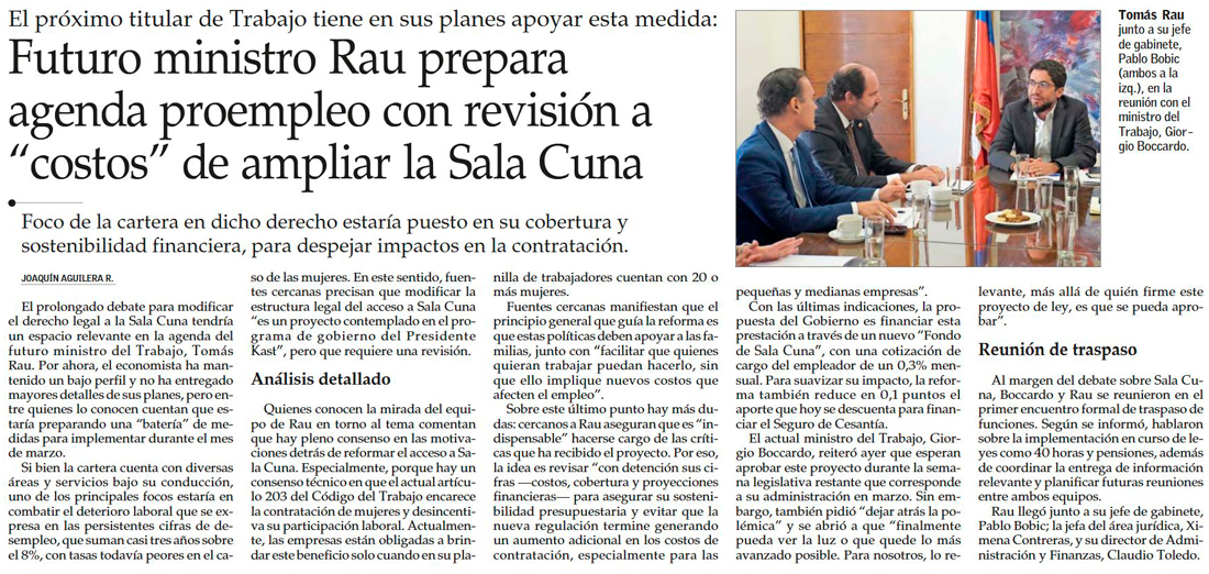 Giorgio Boccardo y Tomás Rau realizan reunión por traspaso de Ministerio del Trabajo - (Pulso)