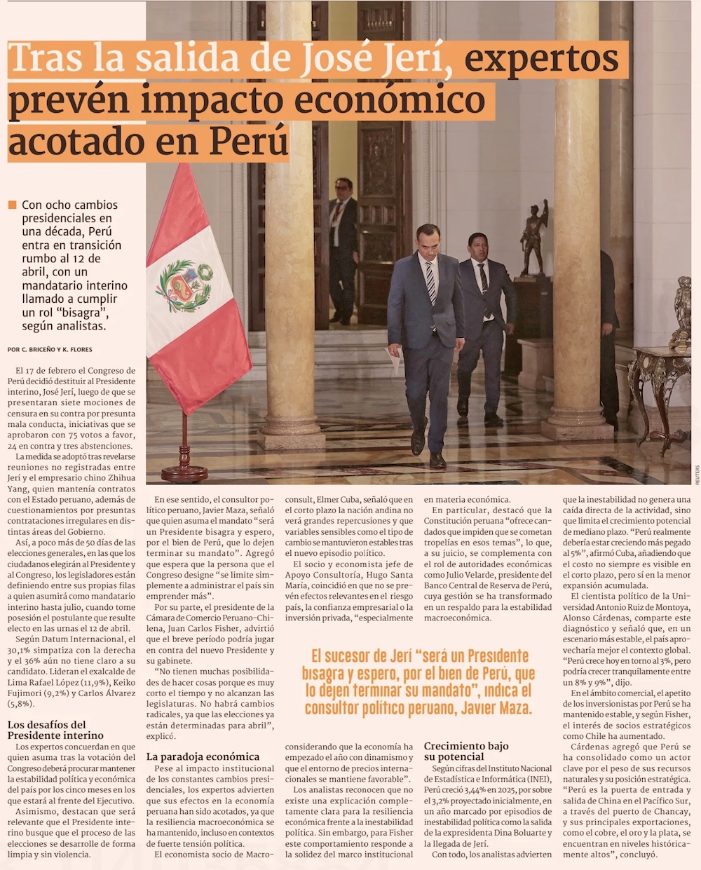 Perú inicia cambio de gobierno marcado por un Congreso dividido y dudas sobre su legitimidad - (El Mercurio de Santiago)