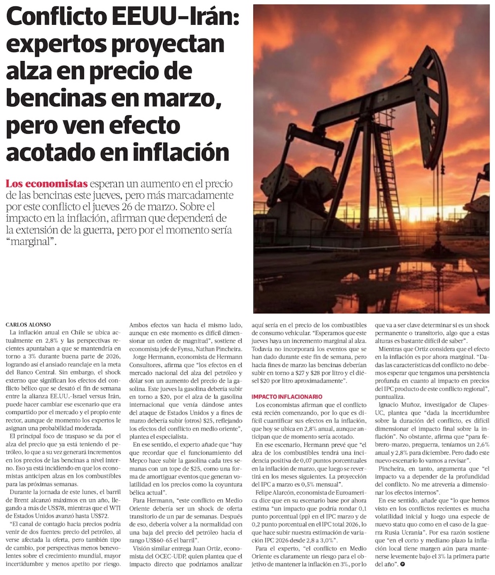 Guerra en Medio Oriente dispara precios del petróleo y surge amenaza de mayor inflación en Chile - (El Mercurio de Santiago)