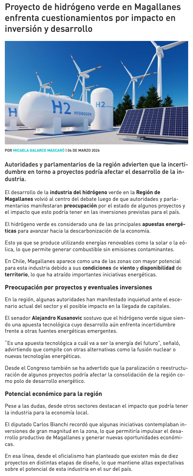 Productores de hidrógeno verde en Magallanes pausan su asociación a la espera de mejores condiciones - (h2news.cl)