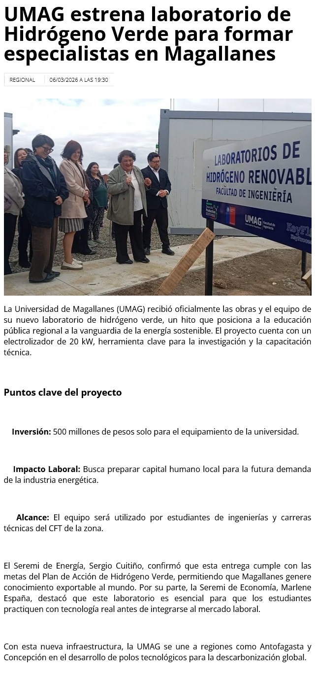 Magallanes fortalece formación en hidrógeno verde con nuevo laboratorio en la Universidad de Magallanes - (radiopolar.com)
