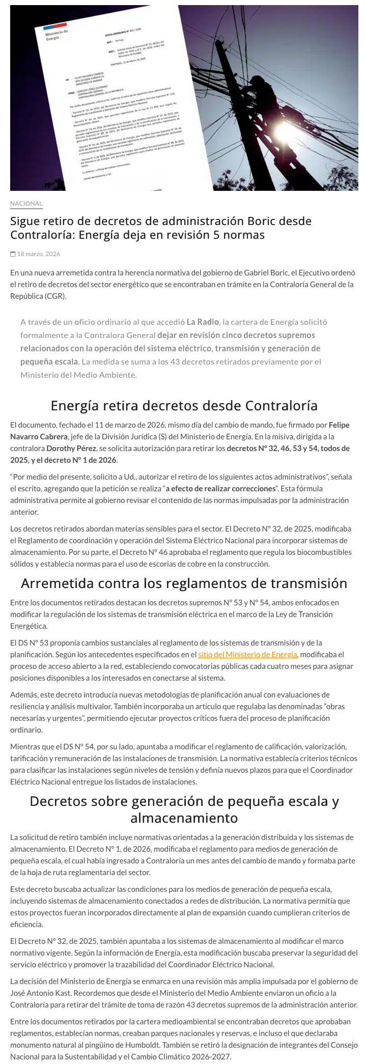 Siguen los retiros: Ministerio de Energía frena 5 decretos de la era Boric - (pagina7.cl)