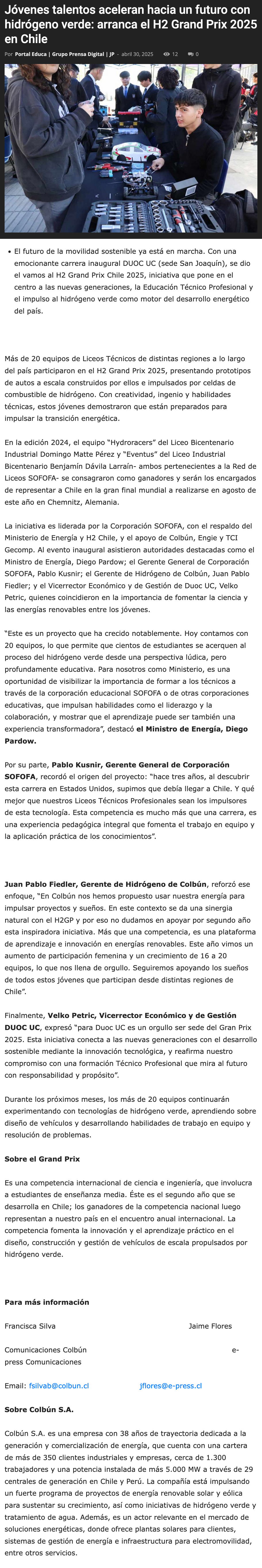 MiƩrcoles, 30 de Abril de 2025