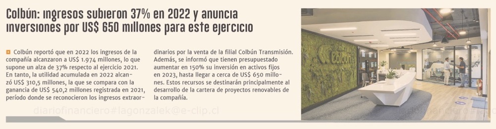 Colbún prevé inversiones por US$ 650 millones este ejercicio - (El Mercurio de Santiago)
