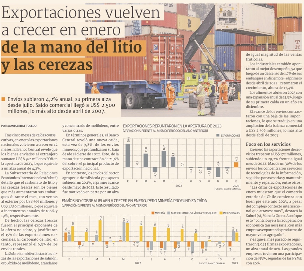Chile registra superávit comercial de casi US$2.600 millones en enero: un alza del 4,2% con el 2022 - (biobiochile online)
