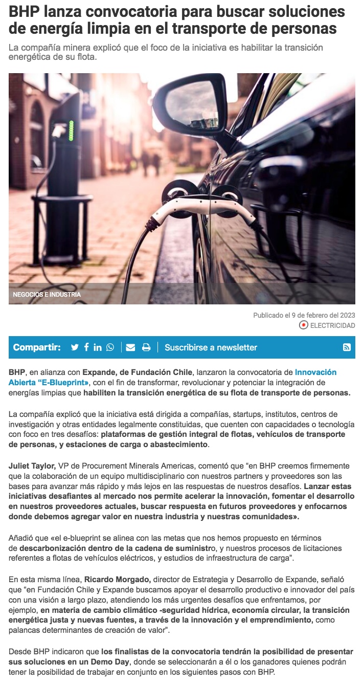 BHP y Expande lanzan convocatoria de innovación en energías limpias para transporte de personas - (mineriayfuturo.cl)