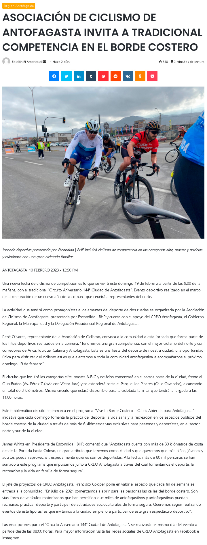 Asociación de ciclismo de Antofagasta invita a tradicional competencia en el borde costero - (timeline)