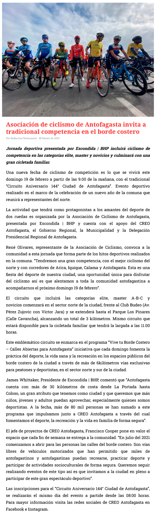 Asociación de ciclismo de Antofagasta invita a tradicional competencia en el borde costero - (timeline)