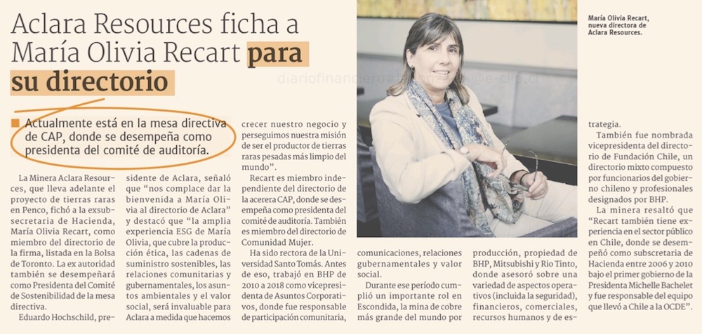 Minera que desarrolla proyecto de tierras raras en Penco ficha a exsubsecretaria de Hacienda en su directorio - (DF Online)