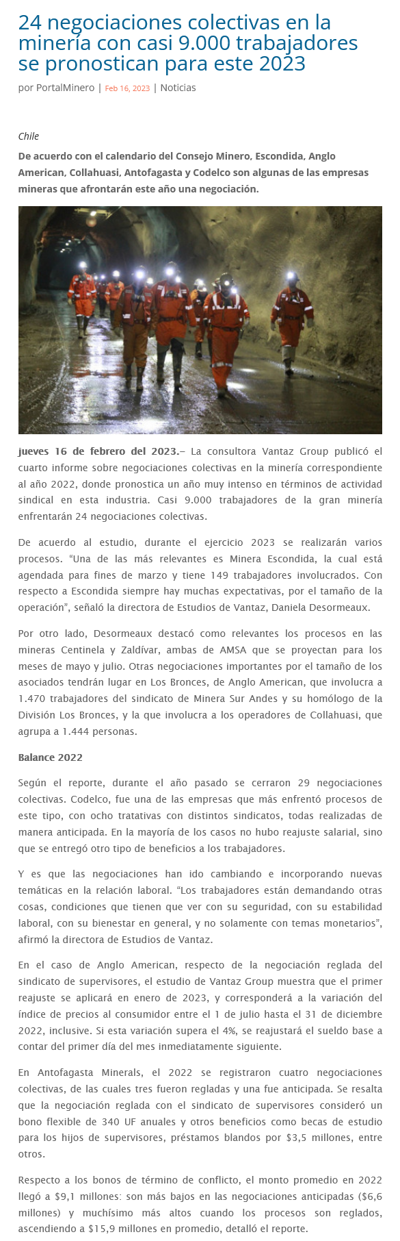 24 negociaciones colectivas en la minería con casi 9.000 trabajadores se pronostican para este 2023 - (Nostálgica Online)