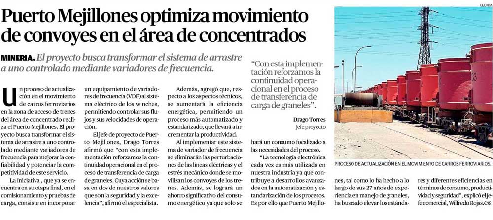 Puerto Mejillones optimizará sistema de movimiento controlado de convoy en el área de concentrado - (mch.cl)