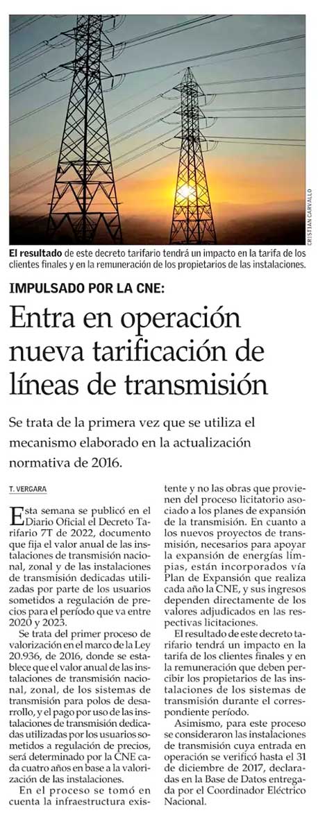 Rige decreto tarifario que fija el valor anual de las instalaciones de transmisión para clientes regulados 2020-2023 - (revistaei.cl)