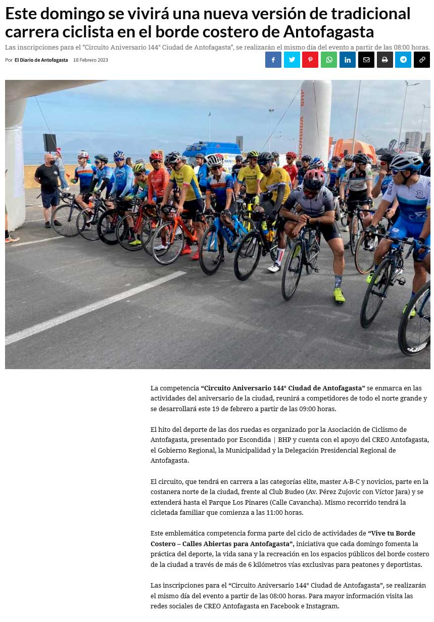 Este domingo se vivirá una nueva versión de tradicional carrera ciclista en el borde costero - (prensaeventos.cl)