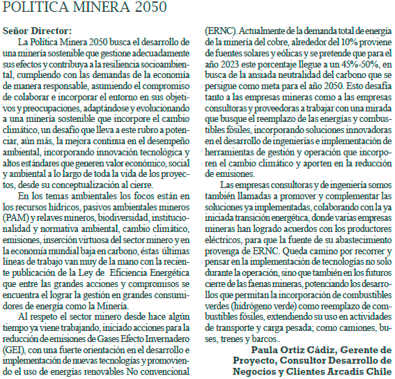 Política Minera 2050 - (El Día)