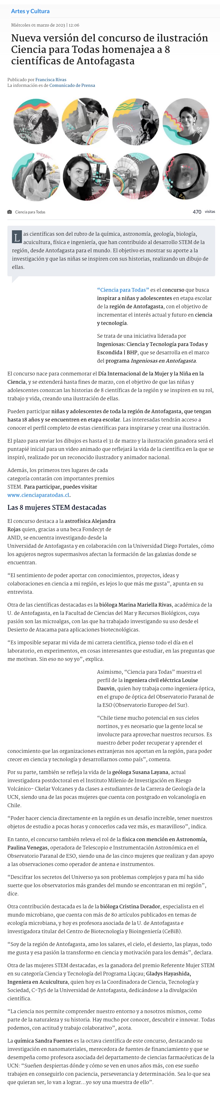Segundo concurso de ilustración “Ciencia para Todas” invita a niñas y adolescentes a retratar científicas de Antofagasta - (soyantofagasta)
