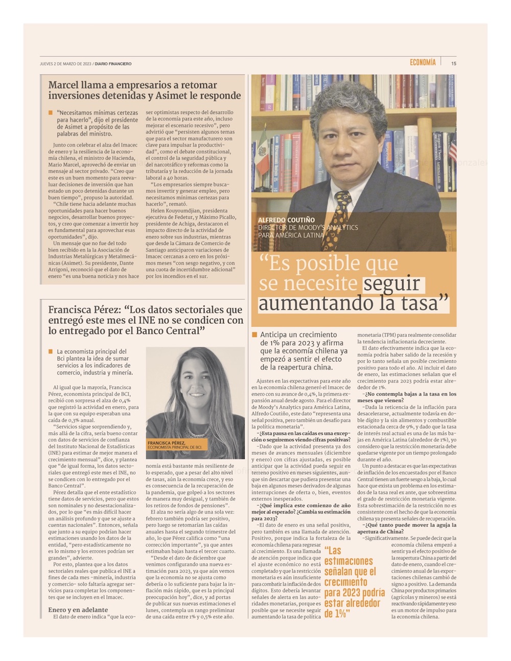 Sorpresivo crecimiento del Imacec mejora cálculo del PIB 2023, pero retrasarĂa baja de tasas - (El Mercurio de Santiago)