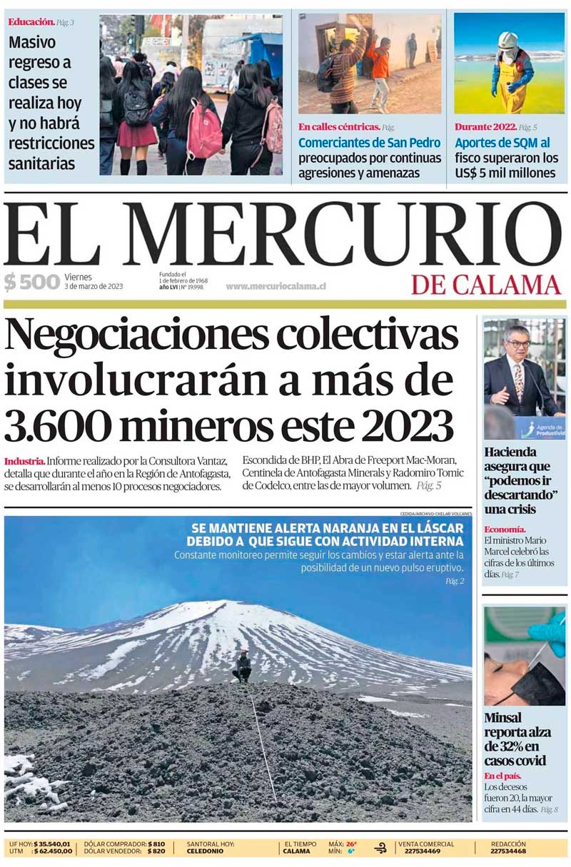 Negociaciones colectivas involucrarían a más de 3.600 trabajadores de la minería este 2023 - (El Mercurio de Antofagasta)