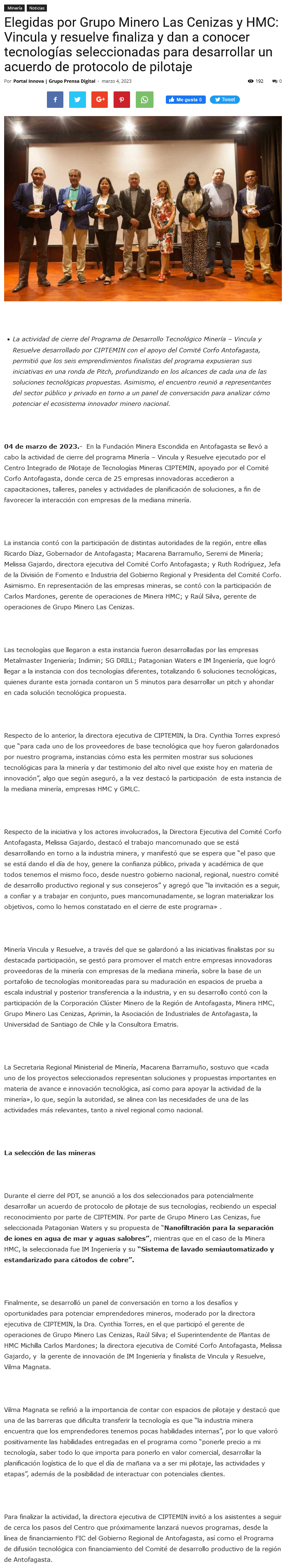Elegidas por Grupo Minero Las Cenizas y HMC: Vincula y Resuelve finaliza y dan a conocer tecnologías seleccionadas para desarrollar un acuerdo de protocolo y pilotaje - (antofagastanoticias)