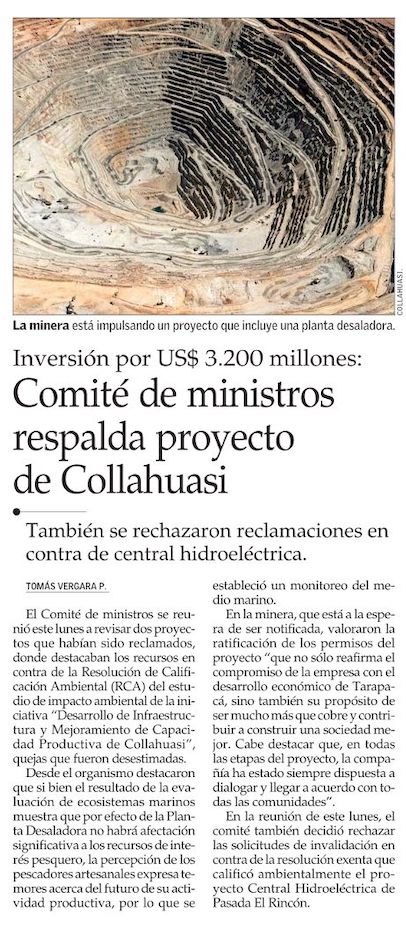 Comité de Ministros mantiene calificación favorable de proyecto de Collahuasi que involucra US$ 3.200 millones - (Diario Financiero)