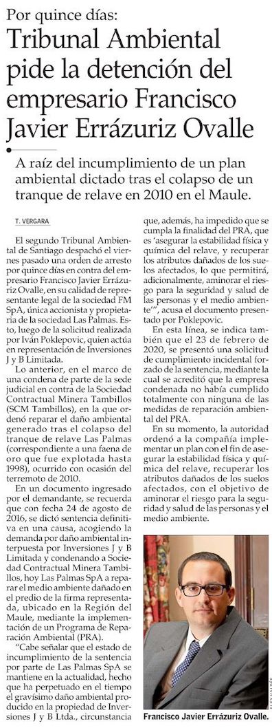 Tribunal Ambiental despacha orden de arresto en contra de Francisco Javier Errázuriz Ovalle por incumplir fallo de 2016 - (Pulso)
