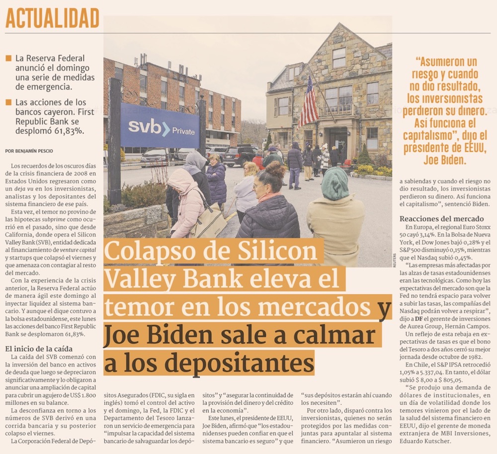 Inversionistas demandan a ejecutivos de Silicon Valley Bank y Biden pide calma ante preocupaciones por el sector financiero - (El Mercurio de Santiago)