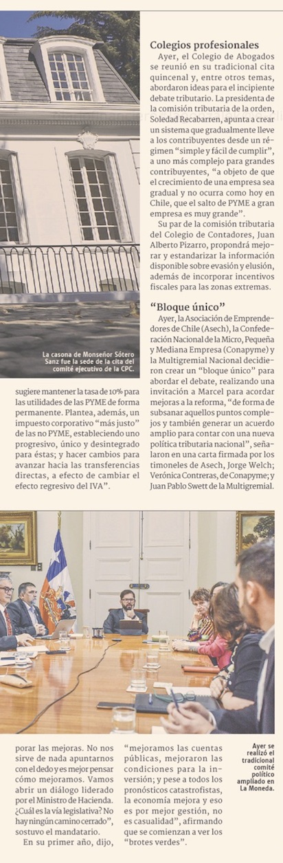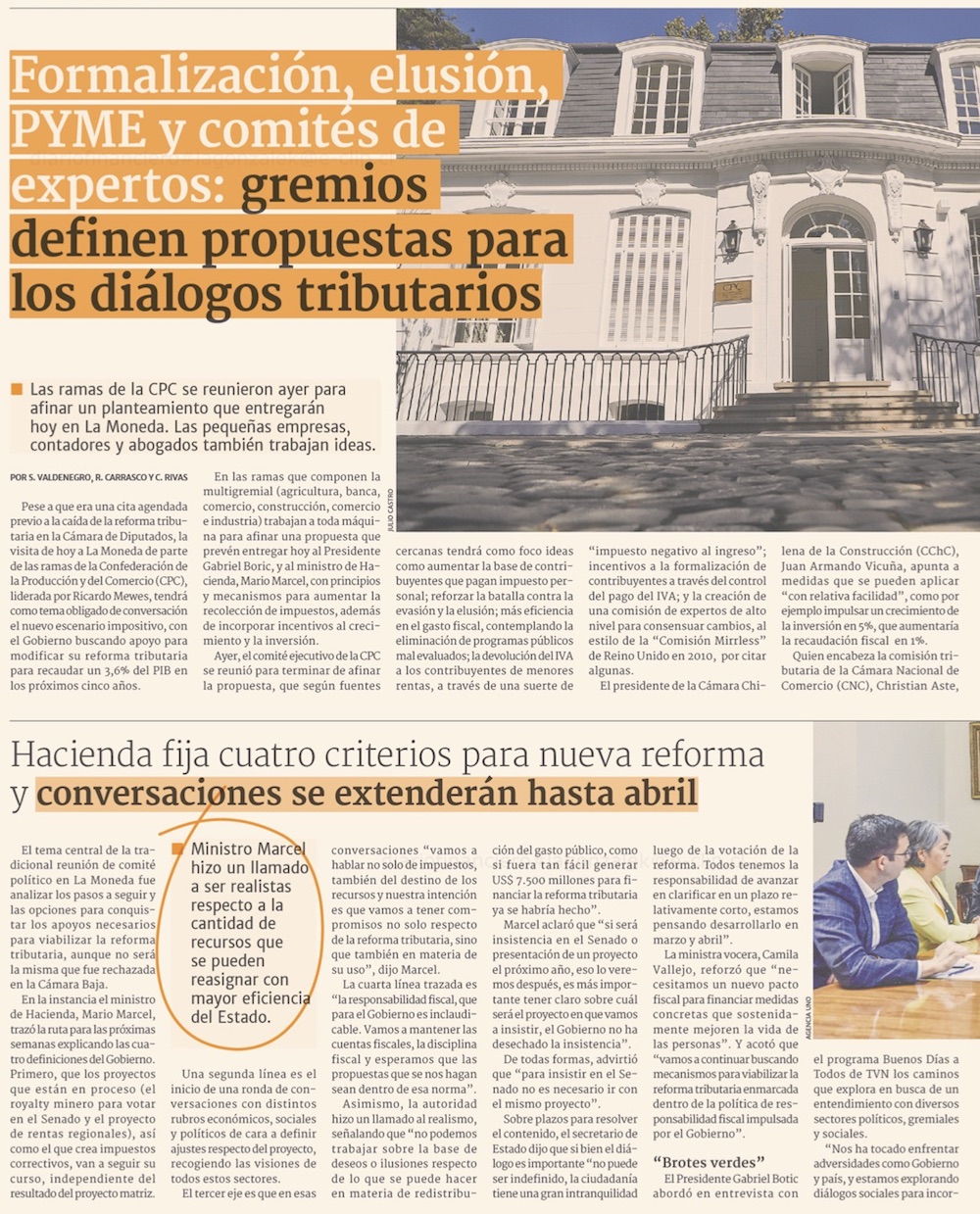 Empresariado llegará a La Moneda para iniciar conversaciones por reforma tributaria y Marcel delinea estrategia a oficialismo - (Pulso)