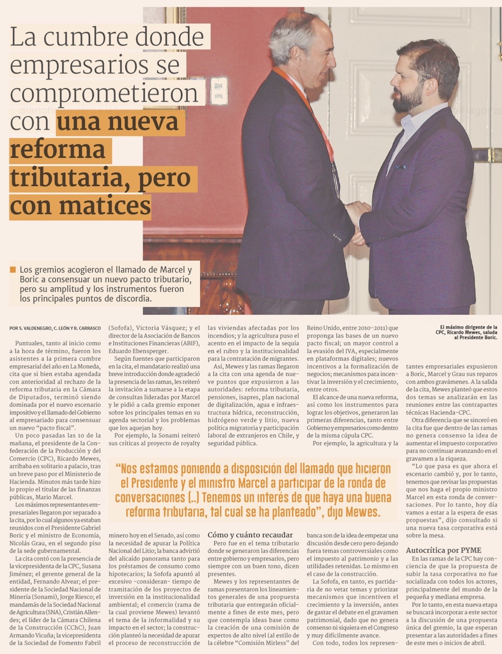 Empresariado frena propuesta de subir impuesto a las grandes empresas y pide zanjar pronto tema tributario - (Pulso)