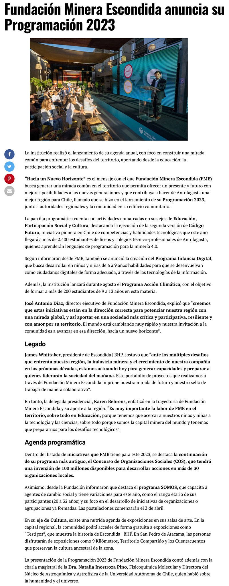 Fundación Minera Escondida anuncia su Programación 2023 - (mch.cl)