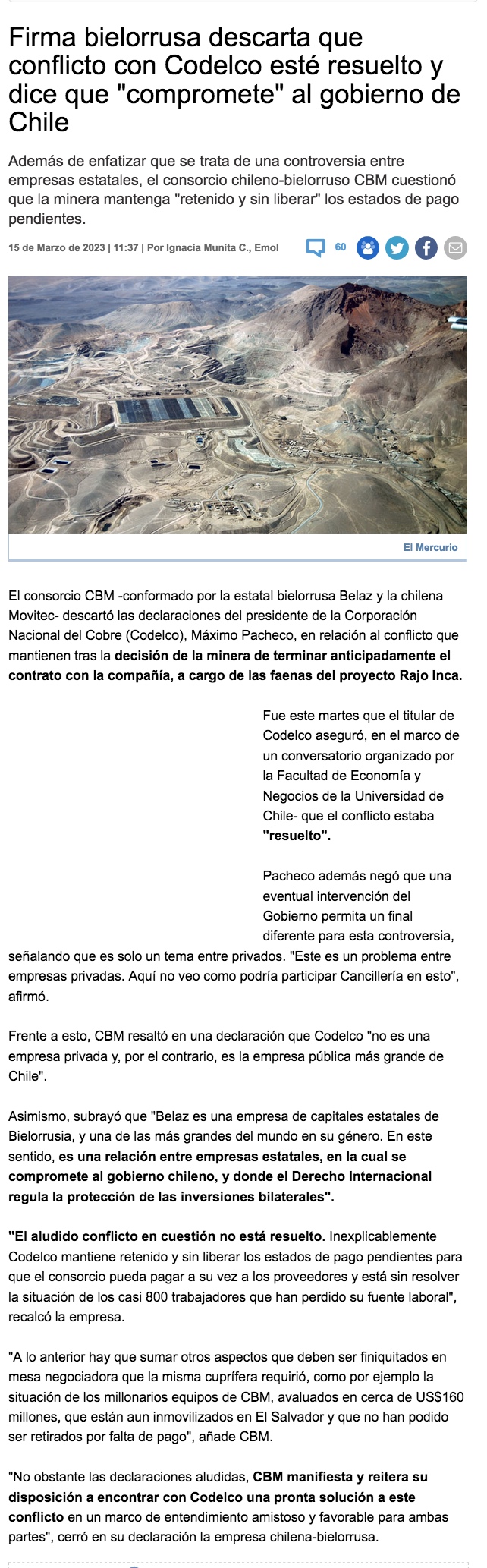 Bielorrusos responden a Pacheco: “El conflicto no está resuelto” - (La Segunda)