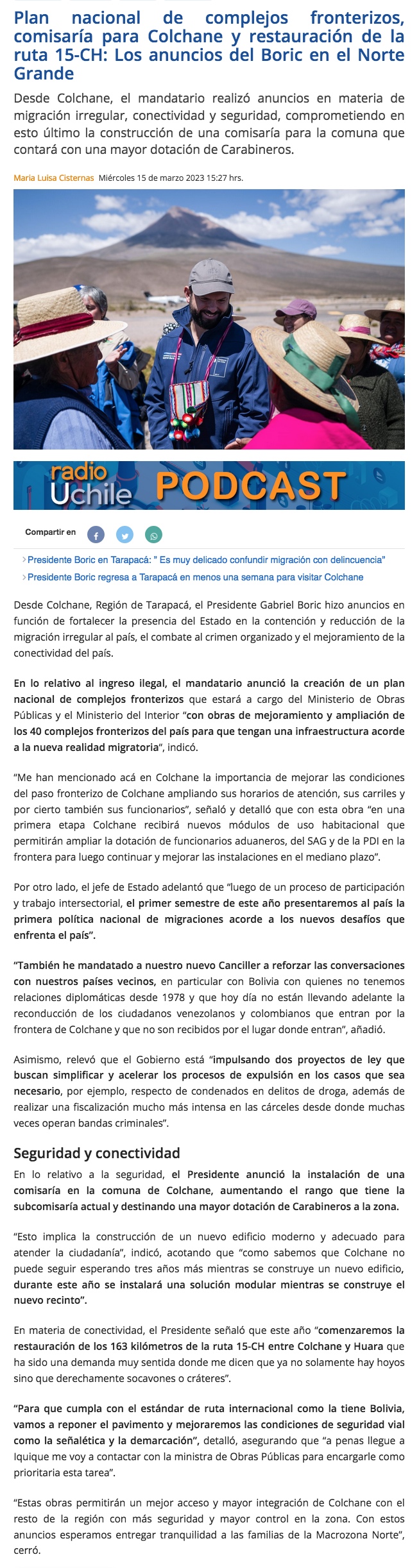 Presidente Boric anunció ayer en Colchane “Plan Nacional de Complejos Fronterizos” - (El Longino de Iquique)